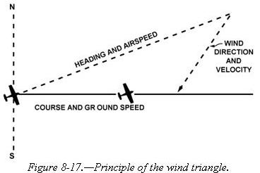| Figure 8-19.—Steps in drawing the wind triangle. |