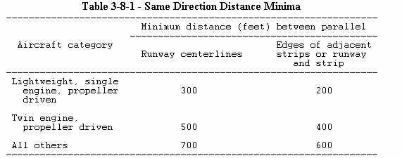 c. The distance between the runways or landing strips is in accordance