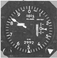 Trends in pressure altimeter design are to be seen in Figures 4-8 and 4-9. Both instruments are similar, differing mainly in presentation of the altimeter setting scales. For improved readability, the instruments provide readout of altitude in "thousands" of feet on the drum, while the single needle indicates altitude in "hundreds" of feet.